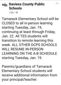 If your child attends Tamarack Elementary school, be aware that Tamarack Elementary will be closed to all in-person learning starting Tuesday, January 19th through Friday, January 22nd. Students enrolled in the Virtual Academy will continue as normal. All students at Tamarack Elementary will continue non-traditional instruction this week.