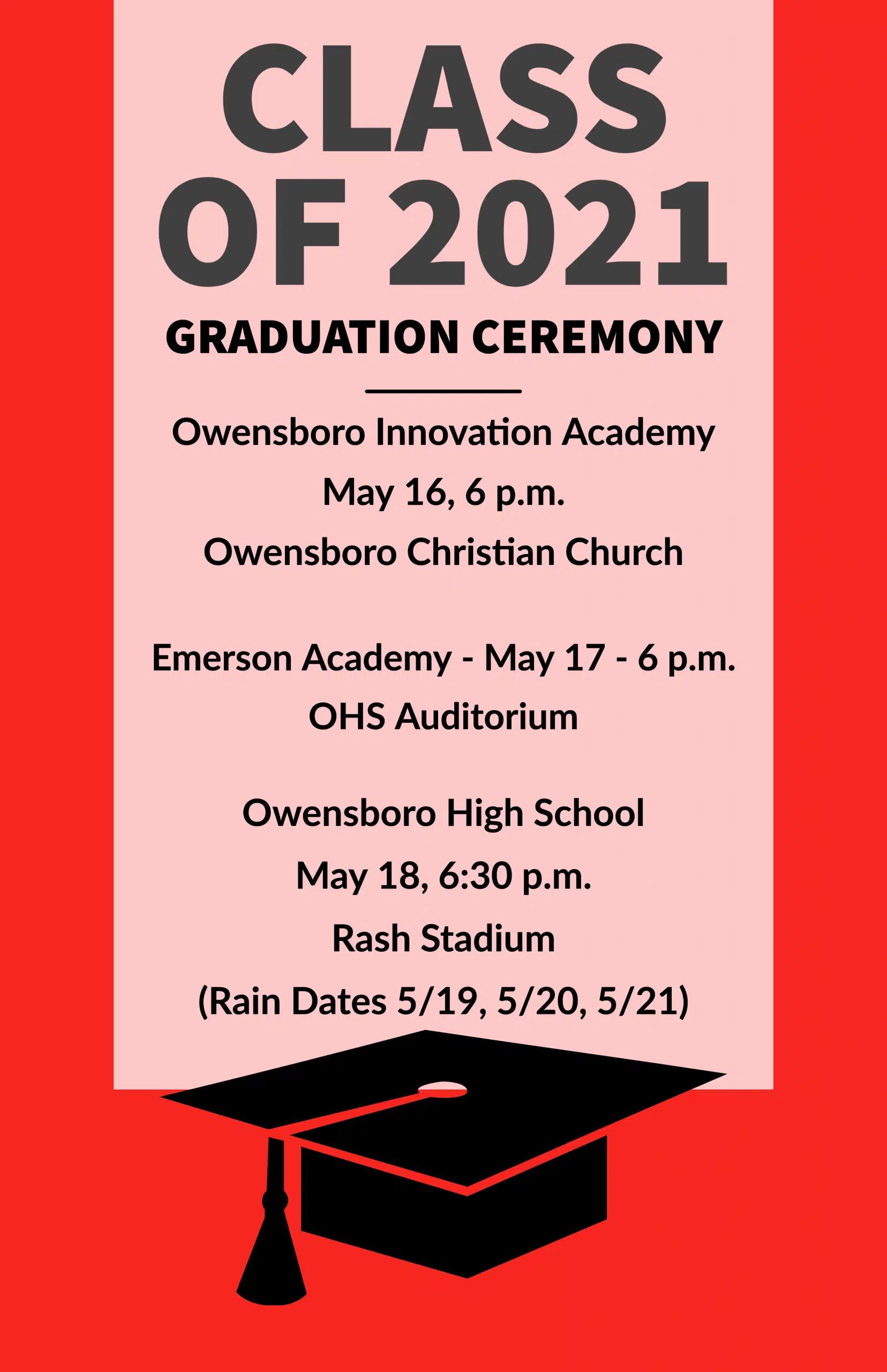 Owensboro High School: 5/18/21 (5/19, 5/20, 5/21 rain dates) – Rash Stadium, 6:30 pm