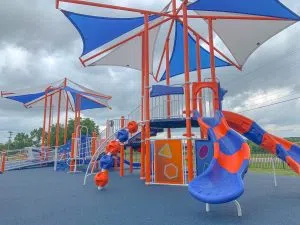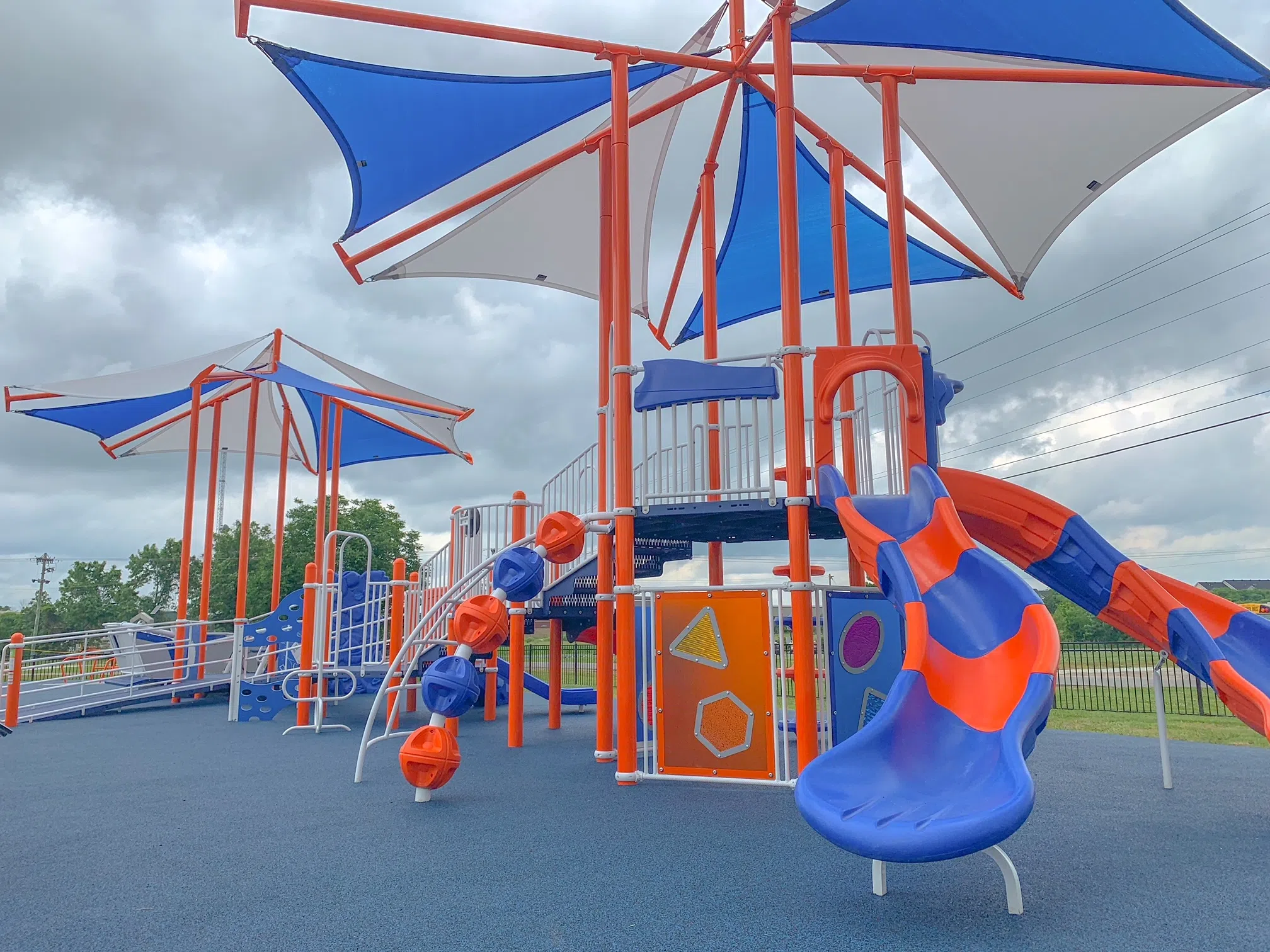 The inclusive playground and spray park are open daily from 9 a.m. to dusk.
