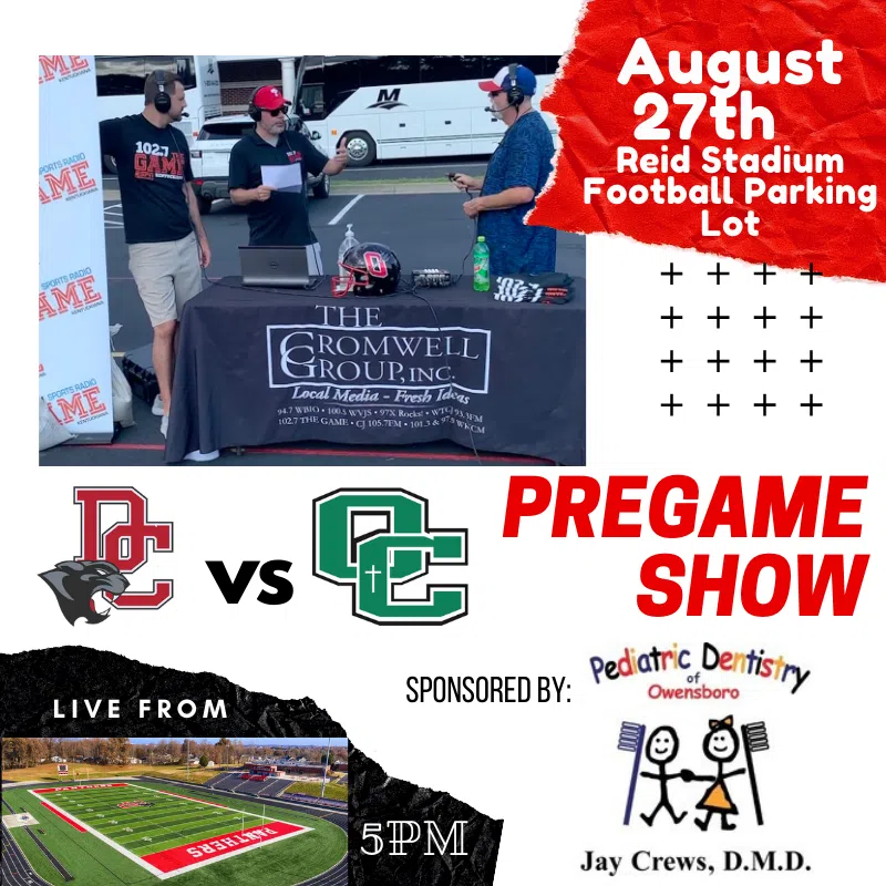 Live at 5 Pregame Show is brought to you by Pediatric Dentistry of Owensboro LIVE from the campus of Daviess County High School as Steve, Vic, and David are joined by Dr. Jay Crews to break down all the local high school football games. Daviess County’s Matt Brannon, Joe Humphreys, and Parker Crews talk about their big game and more. The guys make their predictions for all the area games courtesy of Foreman, Watson, Holtrey, and MORE!