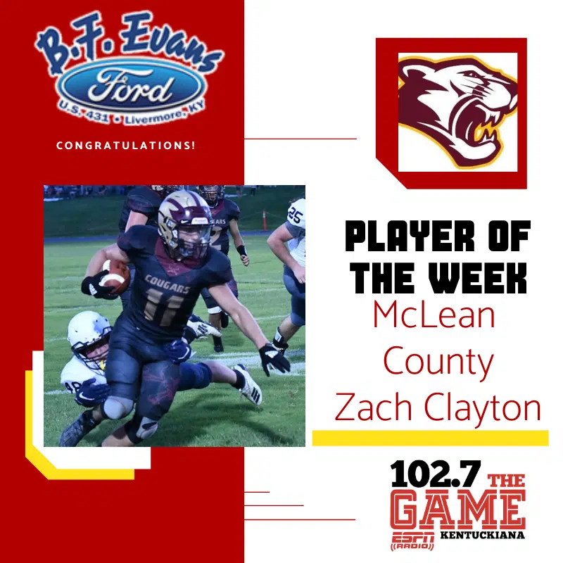For the season, Clayton has scored 7 touchdowns and converted on two 2 point conversions. McLean County will look to bounce back as they host Owensboro Catholic this Friday at Paulsen Stadium.