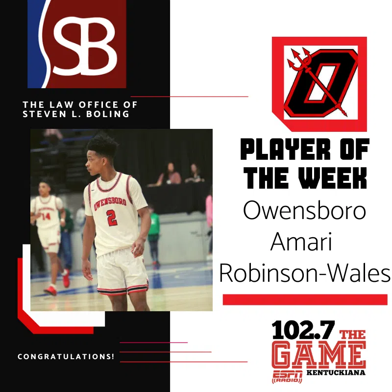 Amari Robinson-Wales has been named the ESPN Owensboro OHS Red Devil of the week brought to you by The Law Office of Steven L. Boling. Specializing in criminal law, family law, civil litigation, and bankruptcy. Visit stevebolinglaw.com for more info.