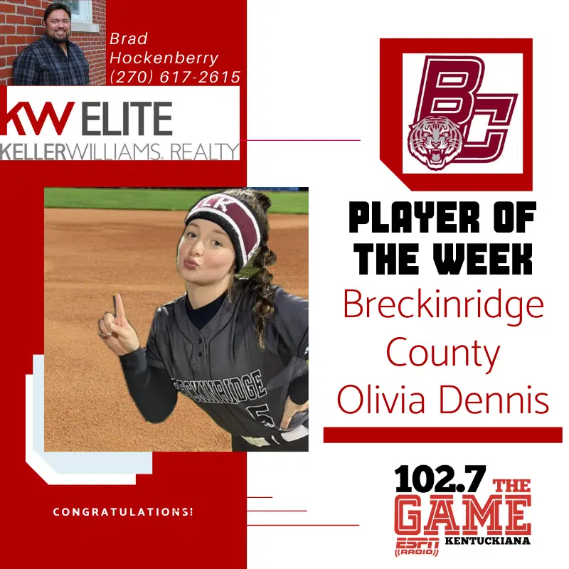 Olivia Dennis has been named the ESPN Owensboro Breckinridge County Fighting Tiger of the week brought to you by Brad Hockenberry Keller Williams Heartland. Follow Brad Hockenberry Realtor on Facebook, give him a call at (270) 617-2615, or visit https://bradhockenberry.kw.com/ to find your dream home today!!