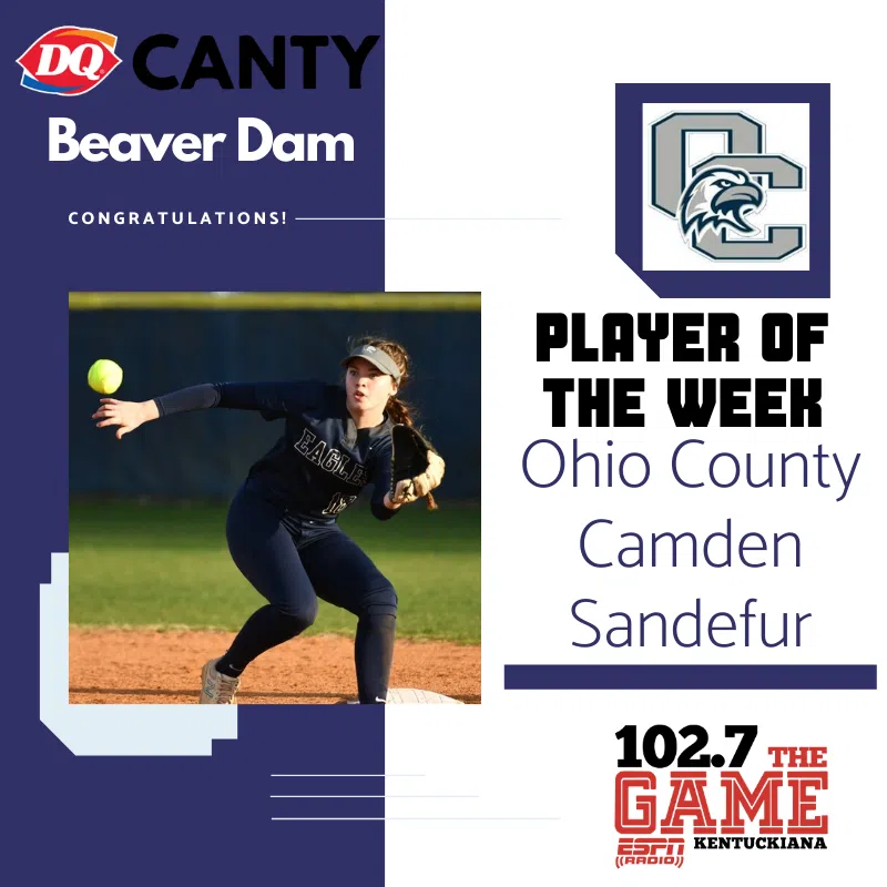 Camden Sandefur has been named the ESPN Owensboro Ohio County Eagle of the week brought to you by Canty Dairy Queen in Beaver Dam. Canty Dairy Queen is NOW HIRING and you can fill out your job application at http://cantyjobs.com. Canty Dairy Queen is also offering a $100 bonus after 60 days!