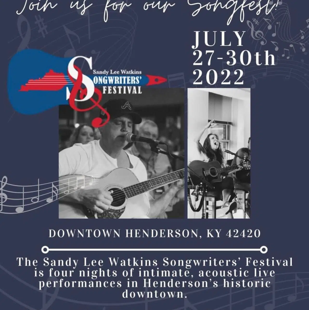 The annual Sandy Lee Watkins Songwriters Festival is set for downtown Henderson. Songwriters are gathering together to tell the story of their music and raise money for local non-profits. The festival opened Wednesday and runs through Saturday. There is a songwriter’s workshop for local musicians and songwriters and a Veteran’s Concert Thursday from 3 to 5 p.m. at the Homeplace of Henderson on Green River Road.