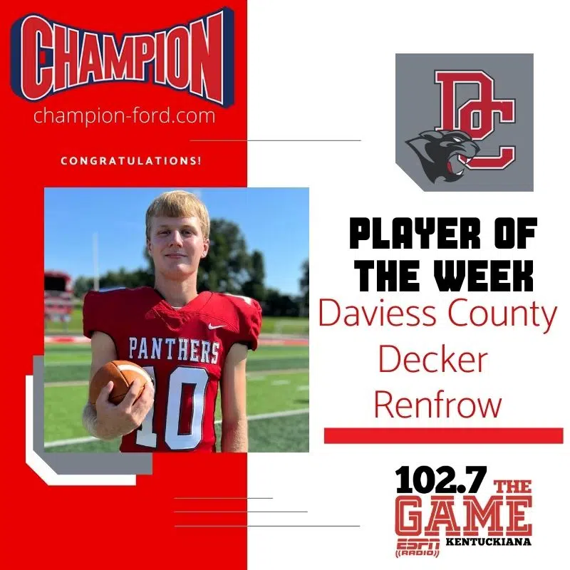Renfrow and the Panthers are back in action this Friday as they’ll travel to Rash Stadium to take on the OHS Red Devils at 7pm. You can tune in to the game on 92.9 WVJS courtesy of Wright Implement. The Live at 5 tailgate show will also be on location in the north parking lot of Rash Stadium by the OHS basketball gym brought to you by Pediatric Denistry of Owensboro!