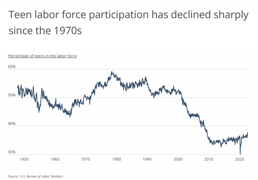 Getting a job as a teenager is a rite of passage for some, and a necessity for others. Whatever the reason for employment, a first job is a memorable and often harsh introduction to responsibility, financial independence, and hard lessons—like giving the government a substantial cut of a hard-earned paycheck. However, once the norm, holding a job as a teenager has increasingly become something of the past.