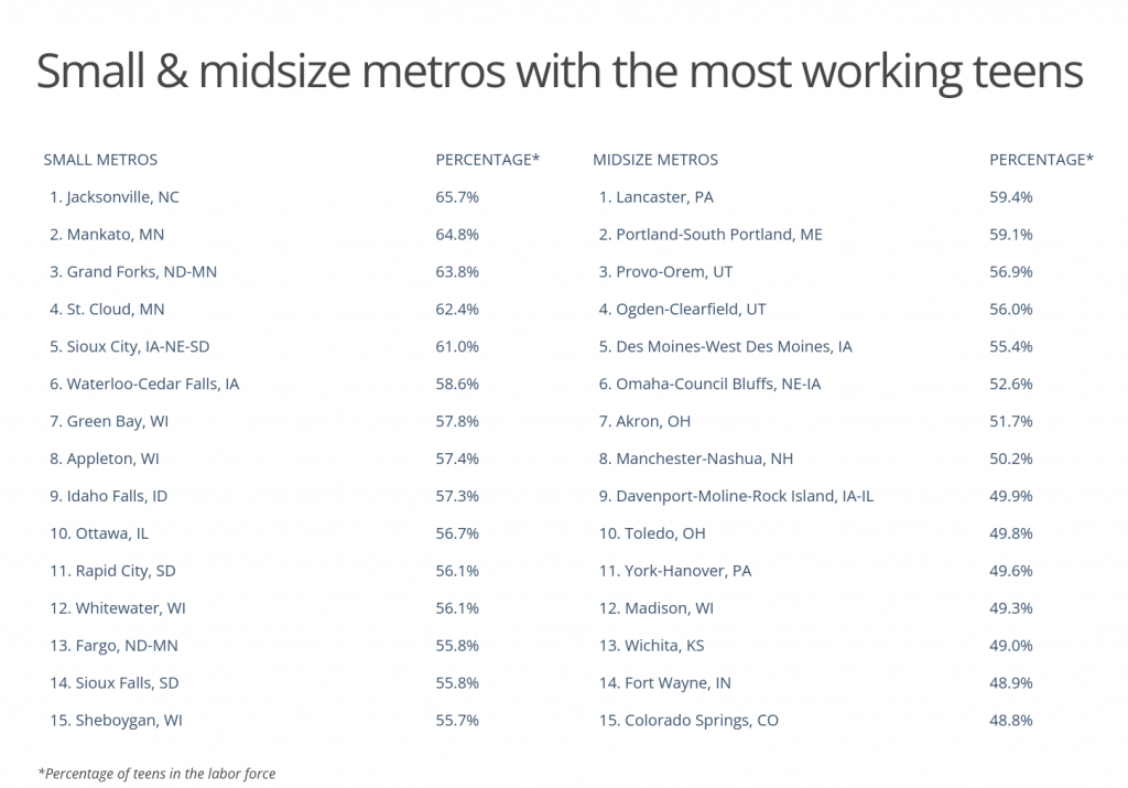 Here are the U.S. metropolitan areas with the most working teens.