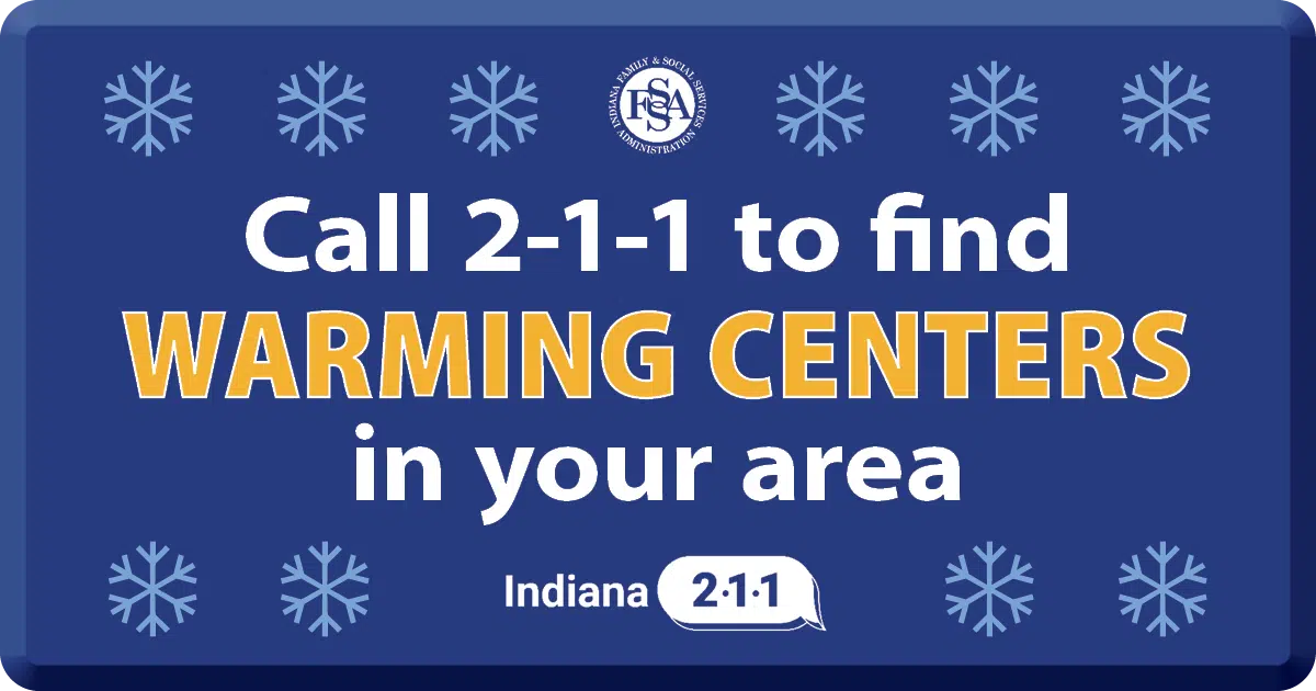 With extreme cold expected this weekend, warming centers will be open across the state for those in need of a safe and warm place to stay. Indiana 211 is your community’s resource for updated locations and hours of warmings centers in your area, as many of the traditional locations people may seek shelter could be closed due to the holidays.