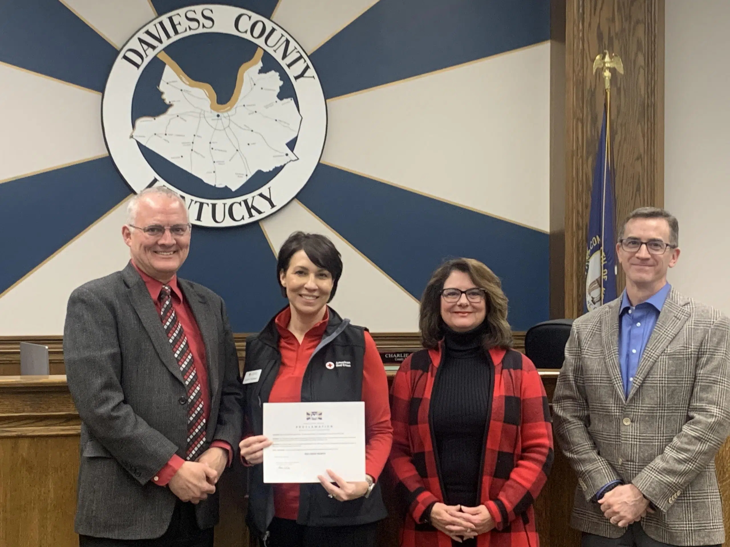 Daviess Fiscal Court officially signed a proclamation recognizing March the 80th Annual Red Cross Month. According to Western Kentucky Chapter Executive Director Misty Thomas, Red Cross volunteers and supporters provide relief and hope, helping to ensure that their neighbors never face crises alone. Thomas says the mission wouldn’t be possible without these community heroes, and they are proud to honor their dedication during their 80th annual Red Cross Month celebration. Supporters can join in their commitment during our Red Cross Month celebration by visiting redcross.org to make a financial donation, become a Red Cross volunteer or take a class to learn lifesaving skills like first aid, CPR, and how to use an AED. With a donation or choosing to volunteer, you help provide shelter, food, relief items, emotional support and other assistance for people affected by disasters big and small.