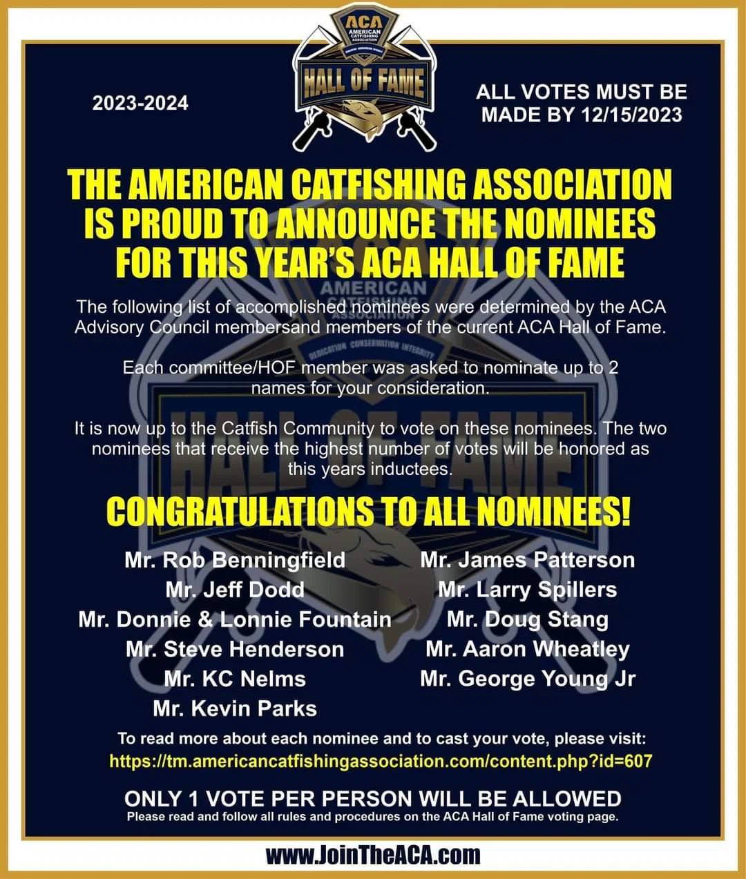 The American Catfishing Association have announced their 2023 list of ACA Hall of Fame Nominees and it’s no surprise to anyone that Aaron Wheatley of Owensboro is on the list!