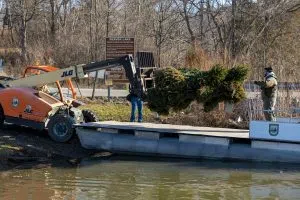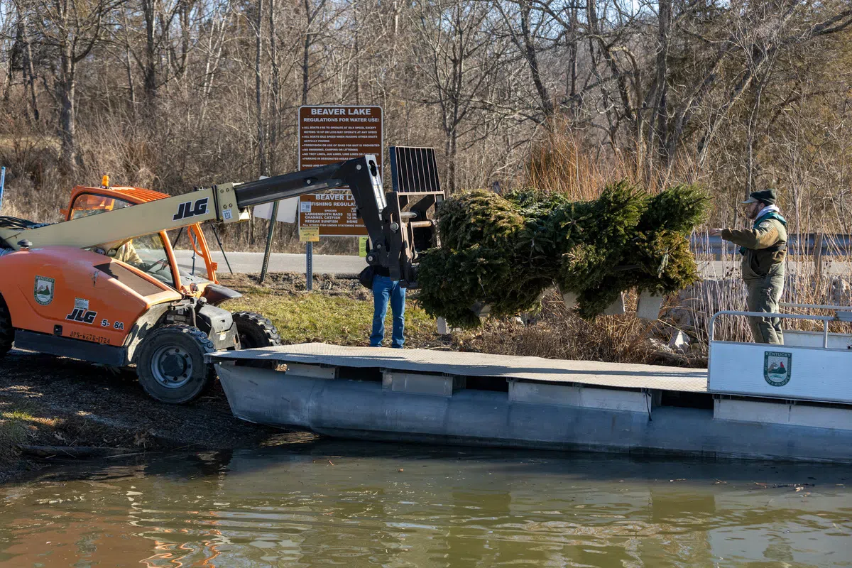 The “Christmas for the Fishes” recycling program uses the trees in lakes and reservoirs to create environments for the fish to feed, shelter and spawn.