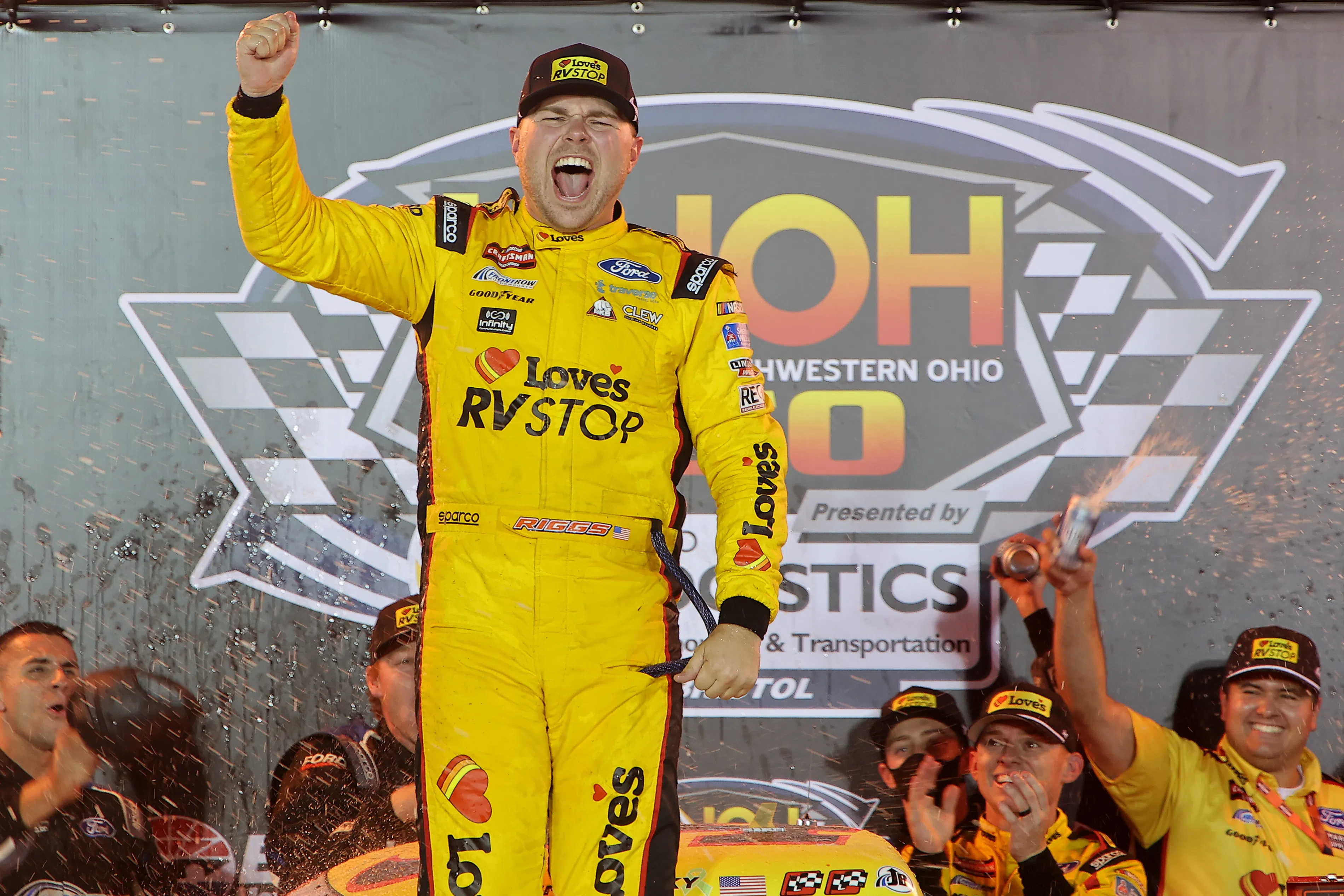 BRISTOL, Tenn. — Layne Riggs recovered from a first-lap spin at Bristol Motor Speedway and rallied to win Thursday night’s UNOH 250 Presented by Ohio Logistics, the second race in the NASCAR CRAFTSMAN Truck Series Playoffs.