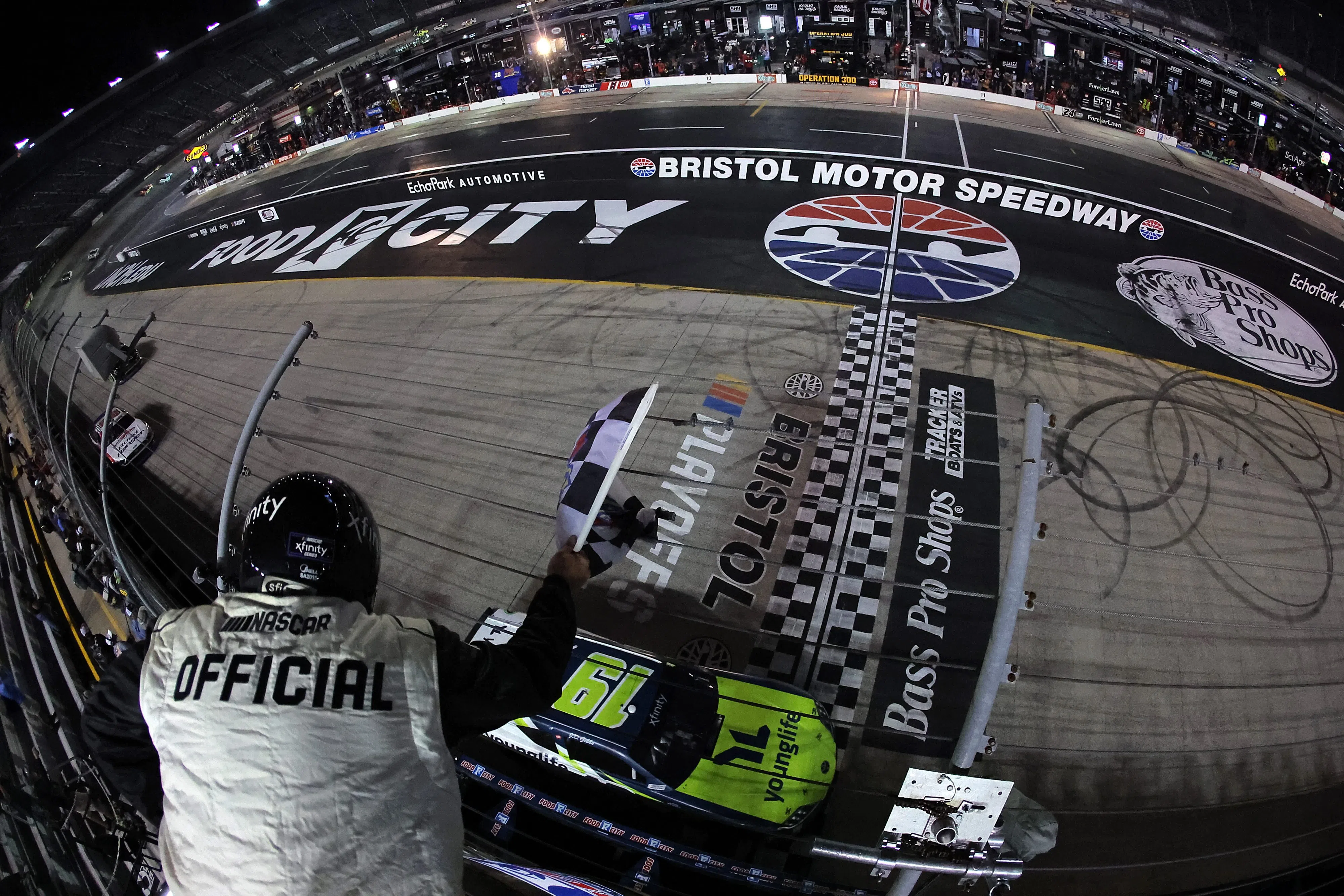 BRISTOL, Tenn. – Benefitting from a split-second late race strategy decision, veteran Aric Almirola held off a mightily-motivated field to claim the win in Friday night’s Food City 300 NASCAR Xfinity Series Playoff opener at Bristol (Tenn.) Motor Speedway.