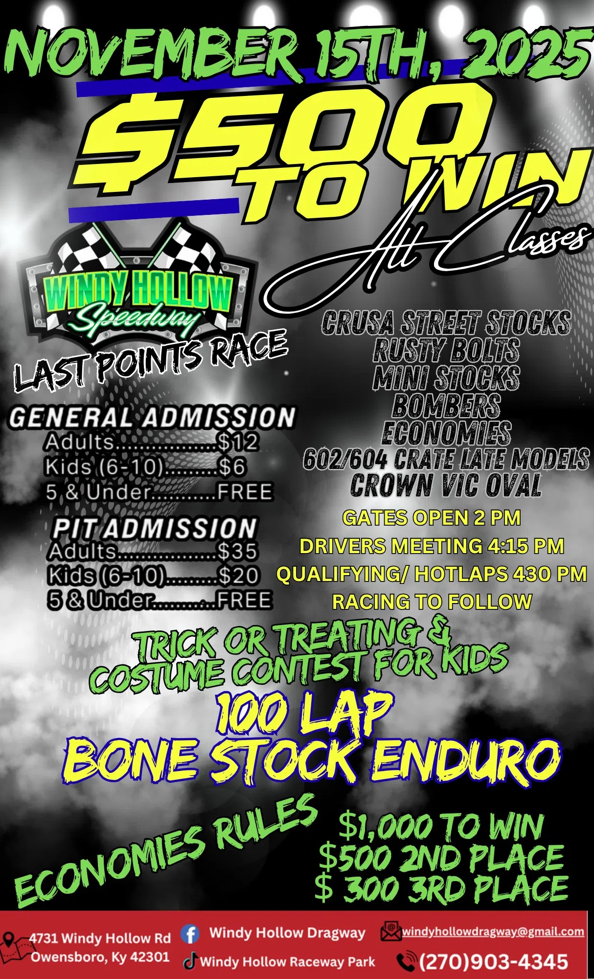 (Owensboro, KY): Windy Hollow Speedway will throw the checkers on their 2025 campaign on Saturday, November 15th.