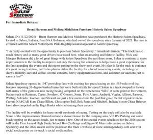 The track, which opened in 1947 also made an announcement of new ownership of the facility.