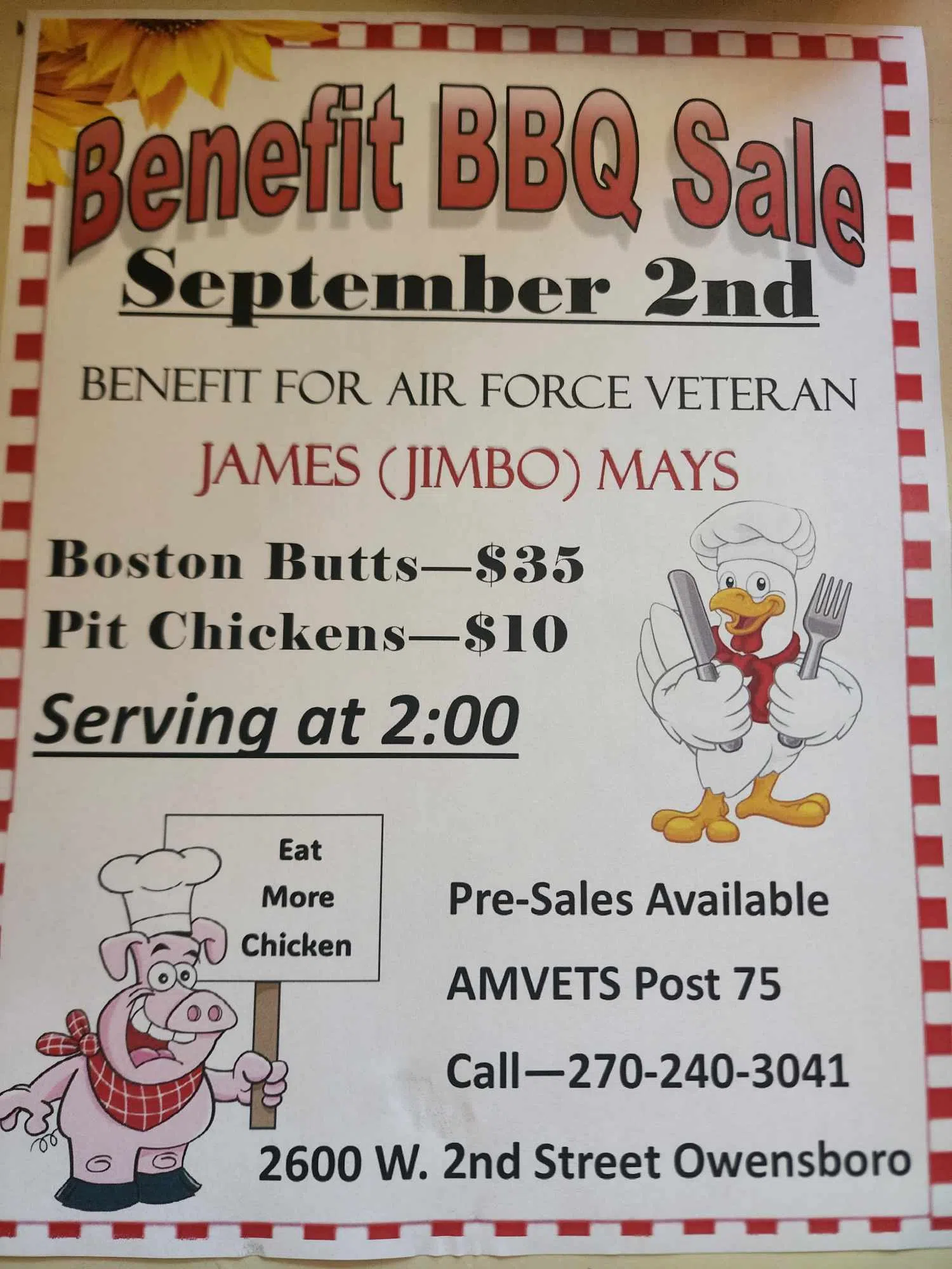 Benefit BBQ Sale - Benefiting Air Force Vet James "Jimbo" Mays