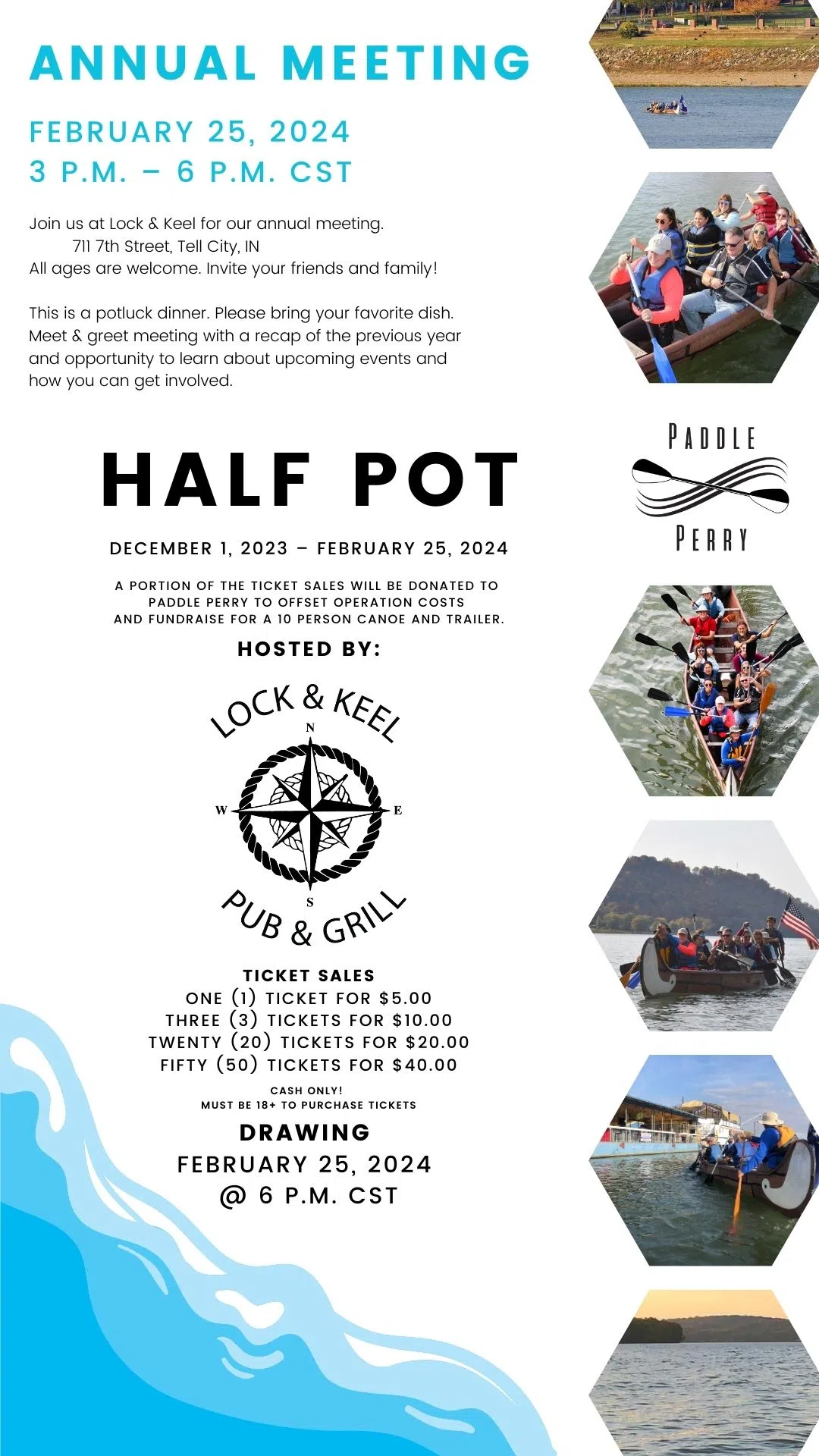 Lock & Keel is hosting a HALF POT on behalf of Paddle Perry. A portion of the sales will be donated to Paddle Perry to help offset operation costs as well as fundraise for a 10 person canoe and trailer.