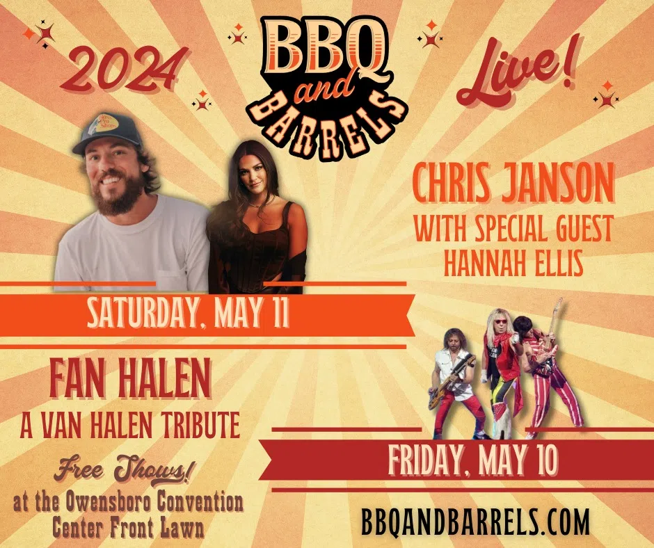 Country music singer Chris Janson will headline the festival music lineup on May 11, marking a special celebration for the Owensboro Convention Center's 10th anniversary. Join us for a FREE concert with special guest Hannah Ellis at 5:30 p.m. on the front lawn – it's a party you won't want to miss!