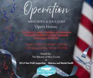 All communities are invited to celebrate a meaningful new chapter in Perry County as Operation Mind, Body, & Soul Corp hosts an Open House and official ribbon cutting ceremony on March 3, 2026. The event will take place from 11:00 AM to 12:00 PM at 140 Highway 66 East in Tell City. At 11:30 AM, the Perry County Cha...