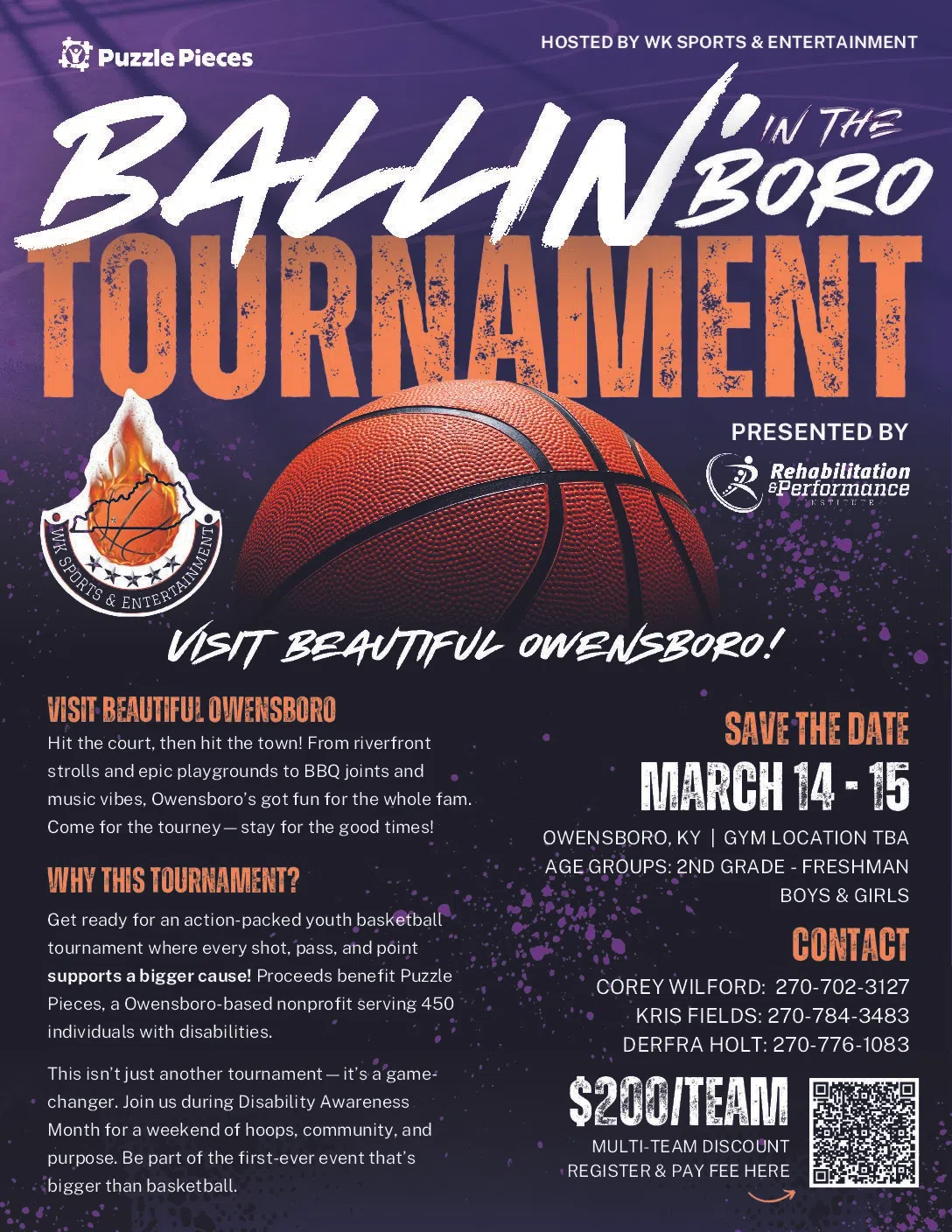 Owensboro will be celebrating community, competition, and inclusion next weekend with a special basketball tournament benefiting a great local organization. Puzzle Pieces will host the Ballin' in the Boro Basketball Tournament on March 14-15, 2026, as part of Disability Awareness Month. The two-day event brings teams a...